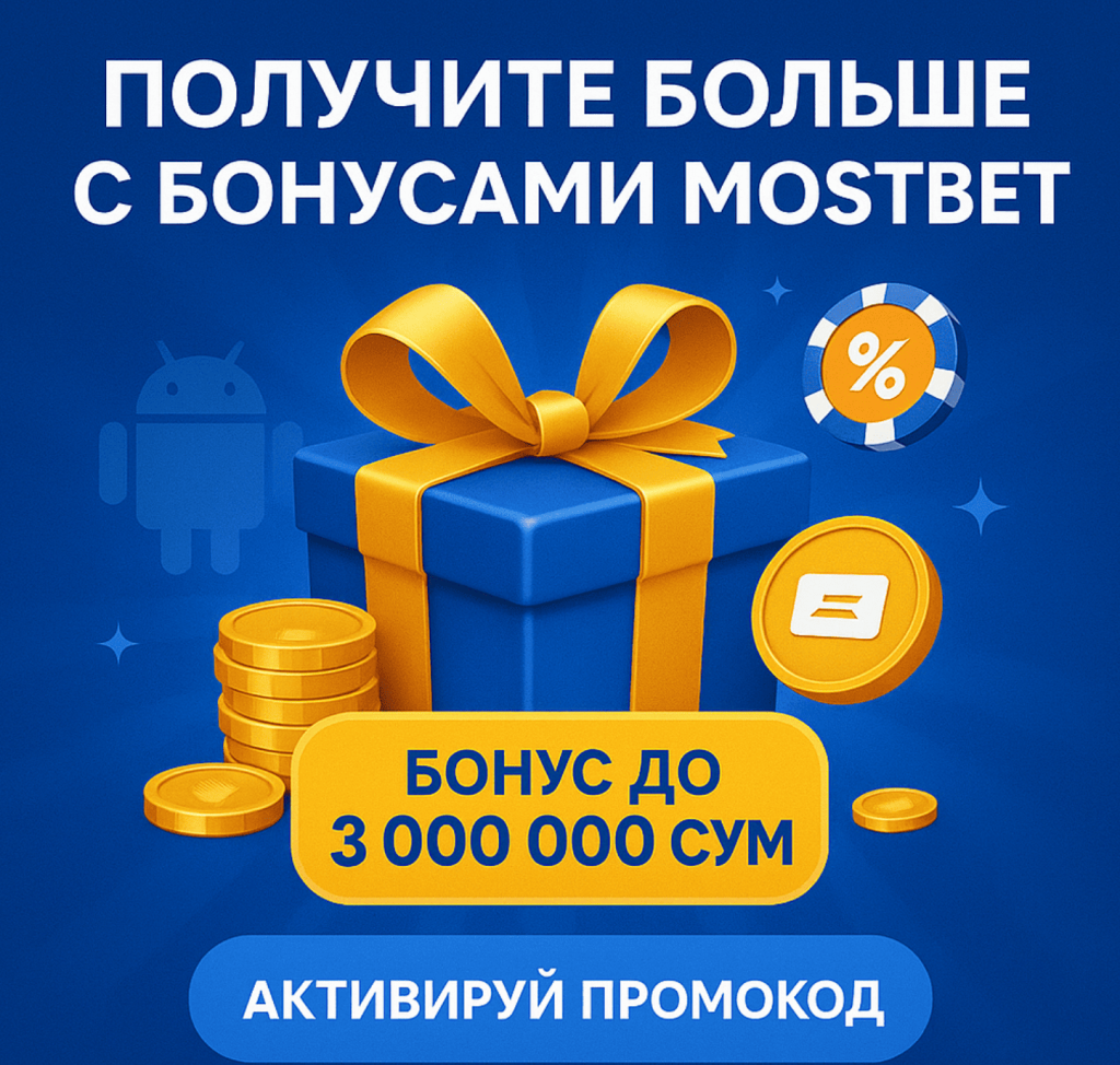 Мостбет продолжает радовать игроков Узбекистана выгодными предложениями. Одним из самых интересных способов получить больше от игры является промокод мостбет — специальная комбинация, активирующая бонусы при регистрации или внесении депозита. Такие предложения особенно актуальны для новых пользователей, а также для тех, кто хочет попробовать разные виды ставок с дополнительными преимуществами.